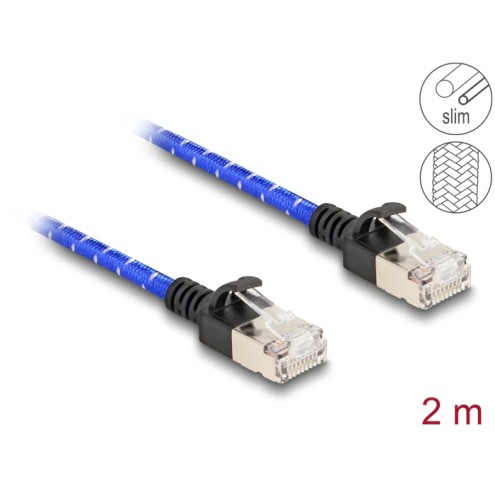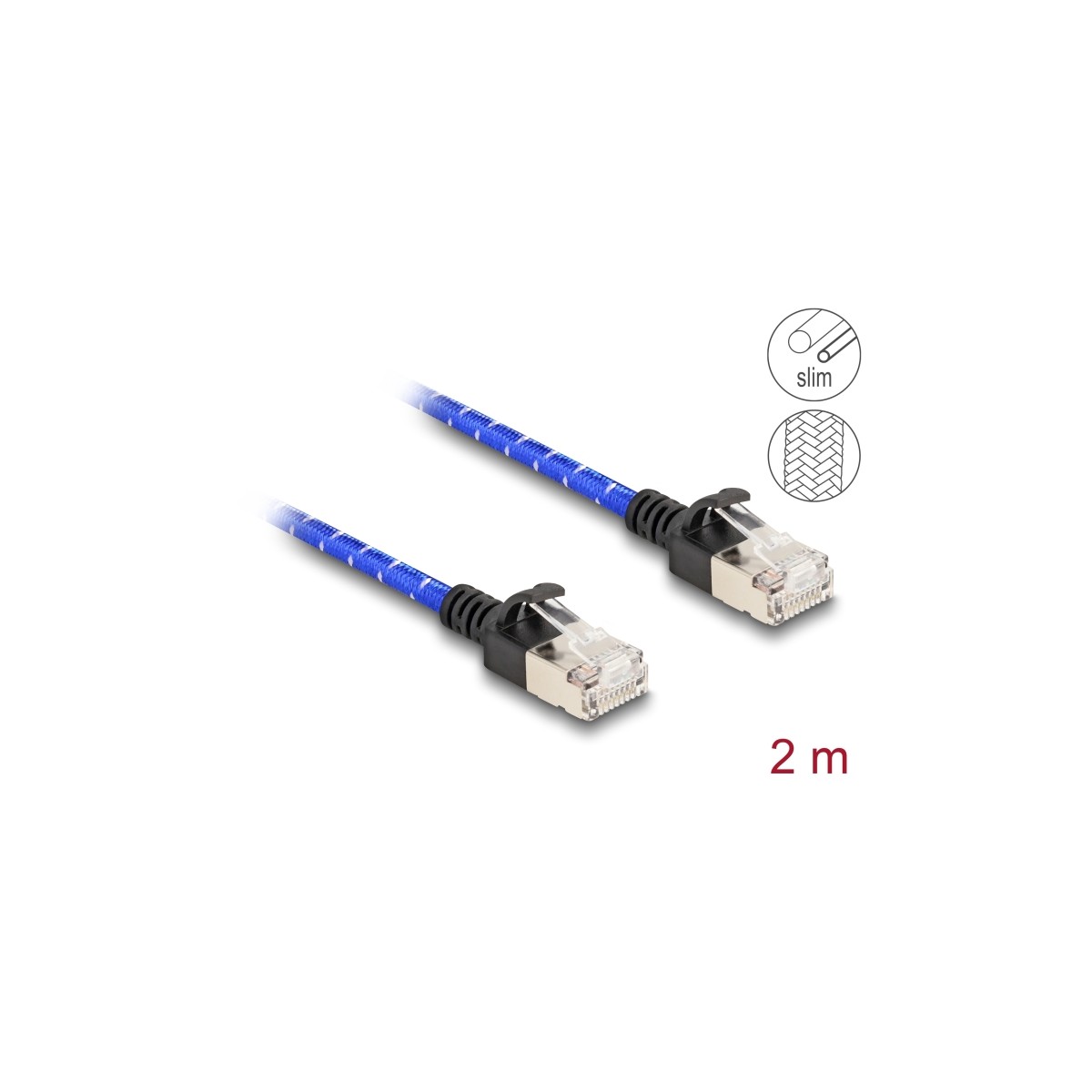 Delock RJ45 Network Cable with braided coating Cat.6A U/FTP Slim 2 m blue