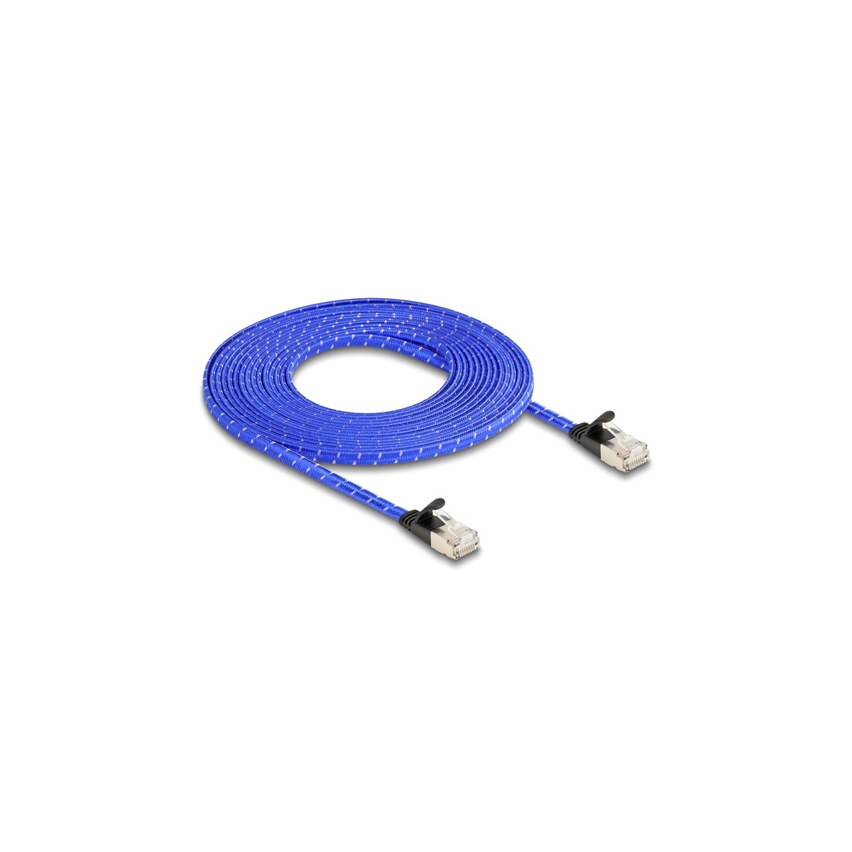 Delock RJ45 flat network cable with braided coating Cat.6A U/FTP 5 m blue