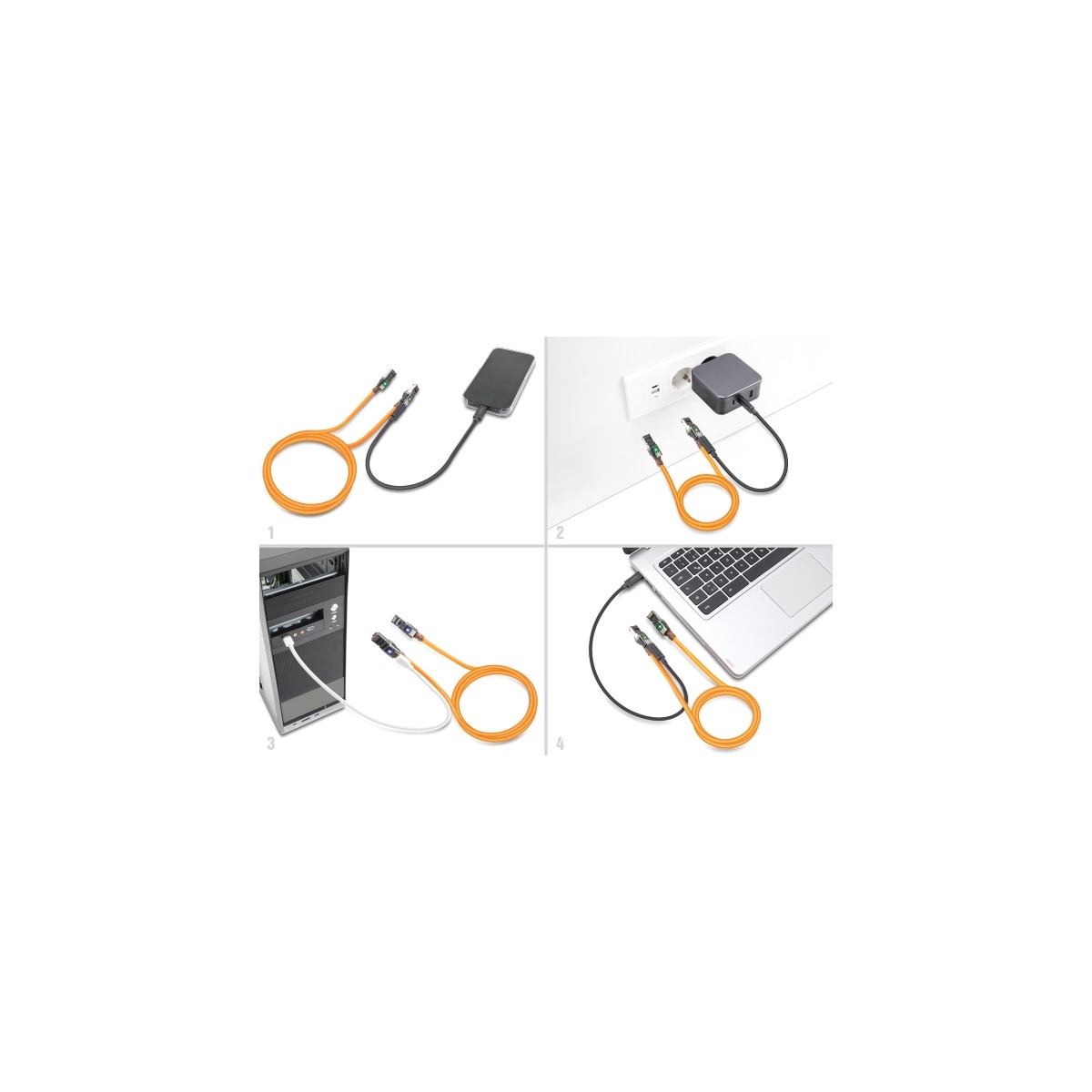 Delock RJ45 Network Cable with USB Type-C™ port finder function Self Tracing Cat.6A S/FTP 10 m orange