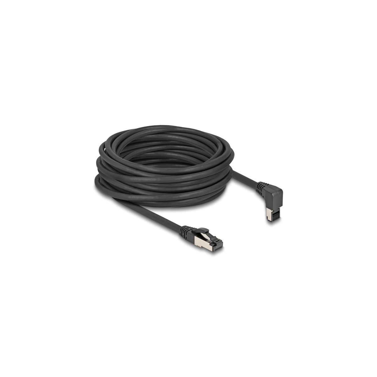 Delock RJ45 Network Cable Cat.8.1 S/FTP 90° upwards angled / straight 10 m black