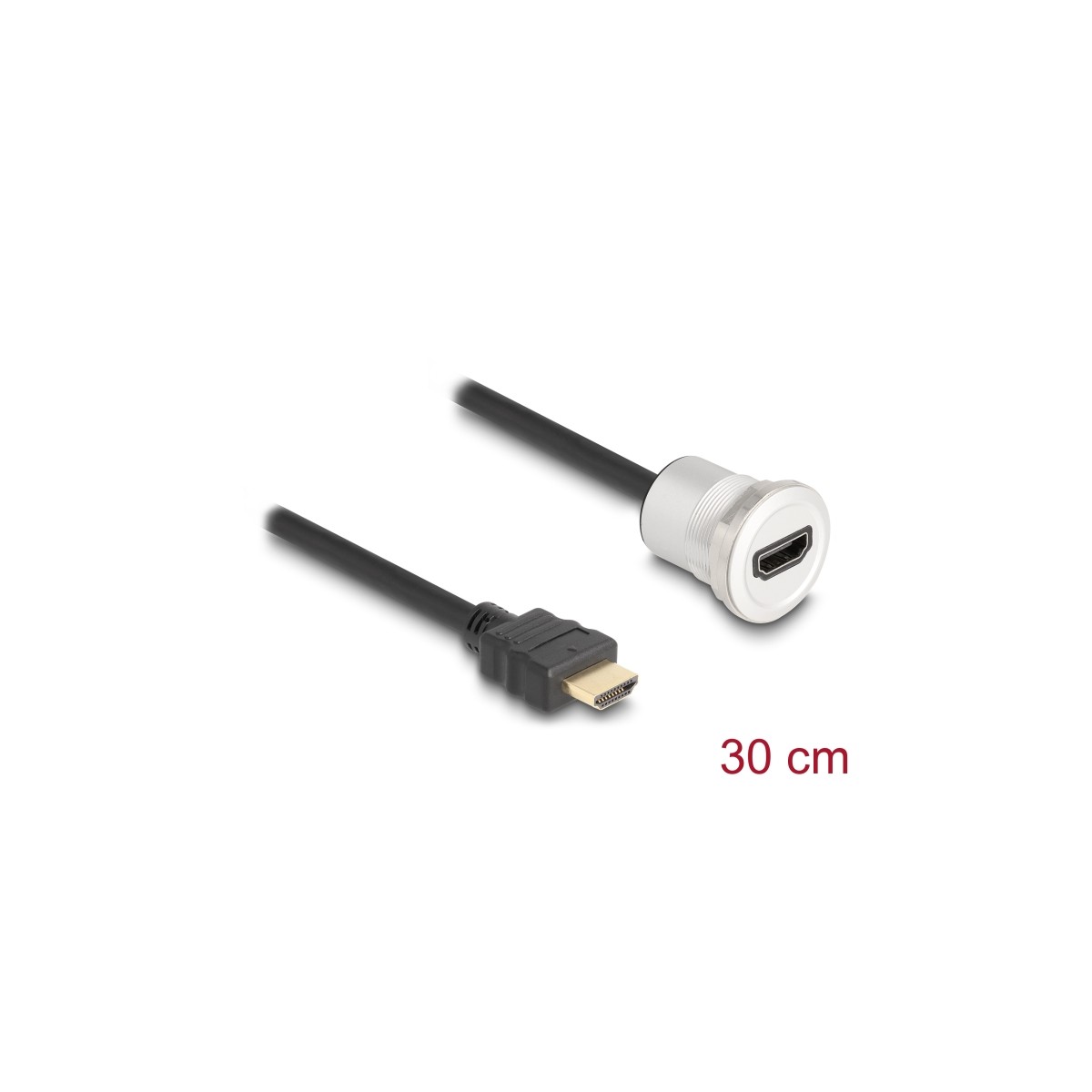 Delock HDMI built-in female 8K 60 Hz with cable plug 30 cm aluminium