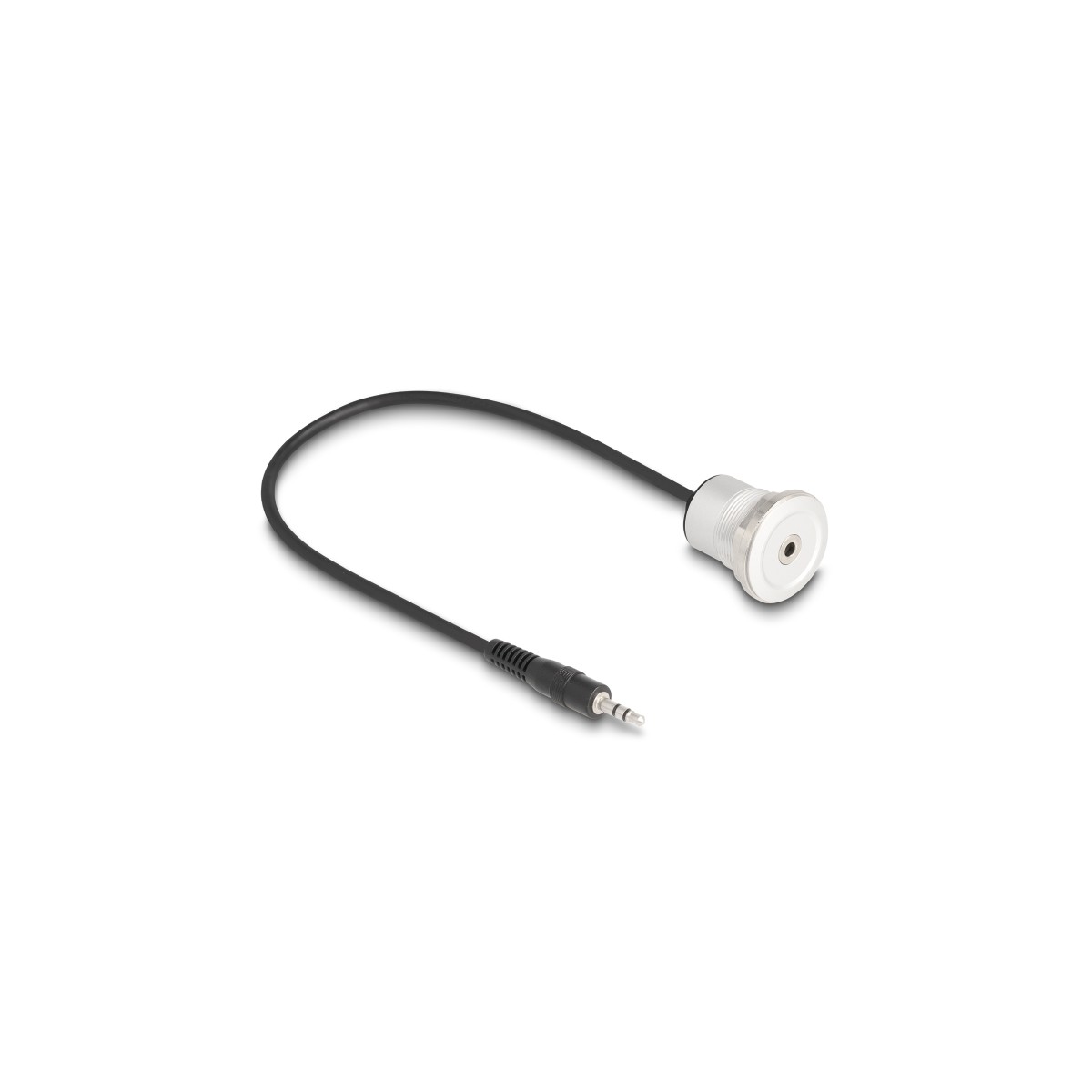 This cable by Delock can be used e.g. for installation in a panel or housing with a suitable opening. It can also be used to extend and connect various devices with a 3.5 mm audio jack connection.