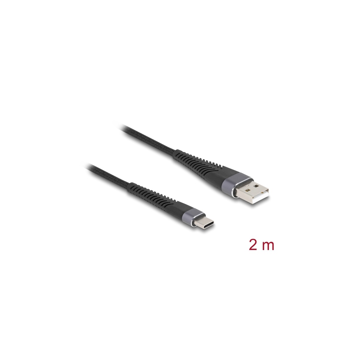 Delock USB 2.0 Cable USB Type-A male to USB Type-C™ male with extended bend protection 2 m