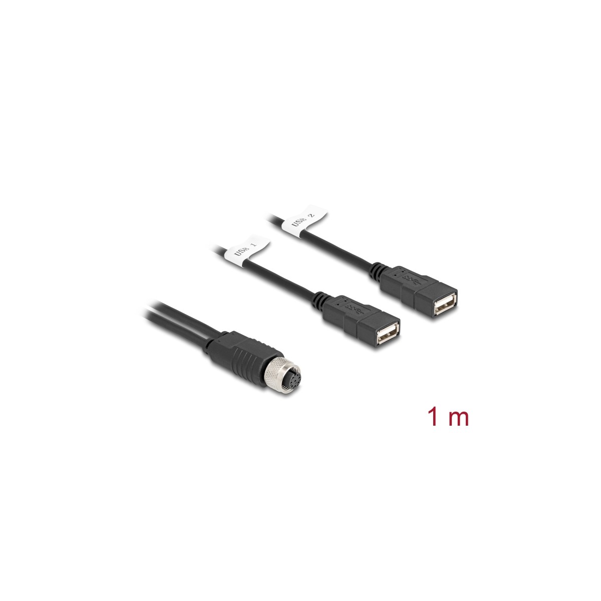 Delock M12 Cable A-coded 8 pin female to 2 x USB 2.0 Type-A female 1 m black