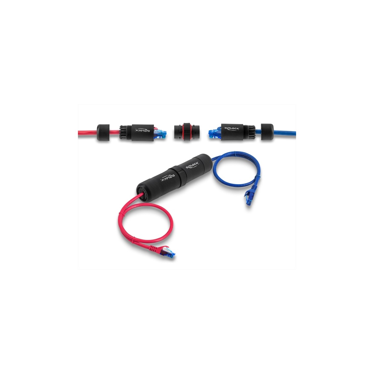 This cable connector by Delock connect RJ45 network cables and is ideal for outdoor use e.g. in the garden.