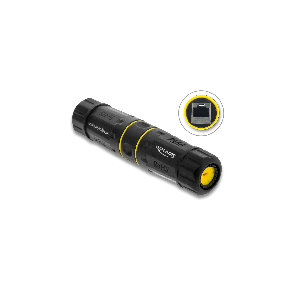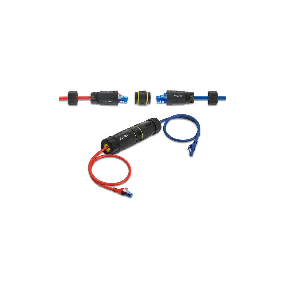 This cable connector by Delock connect RJ45 network cables and is ideal for outdoor use e.g. in the garden.