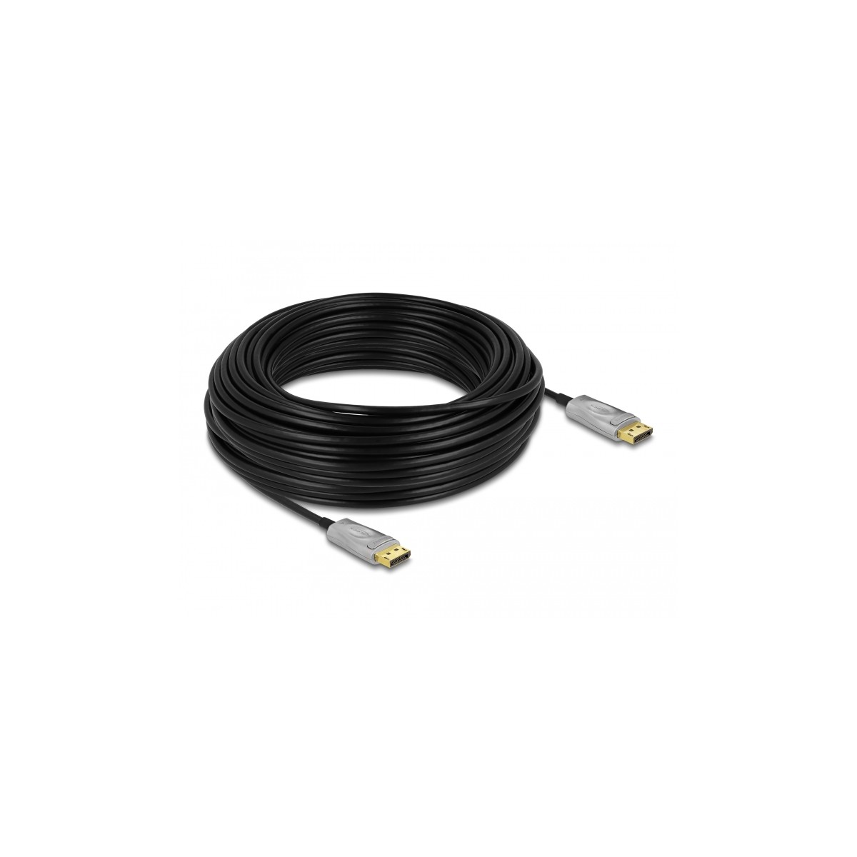 This cable by Delock is used to connect devices with a DisplayPort interface, such as monitors or TVs, to a PC or a laptop. This active optical cable is particularly thin and can transmit signals without loss over longer distances.