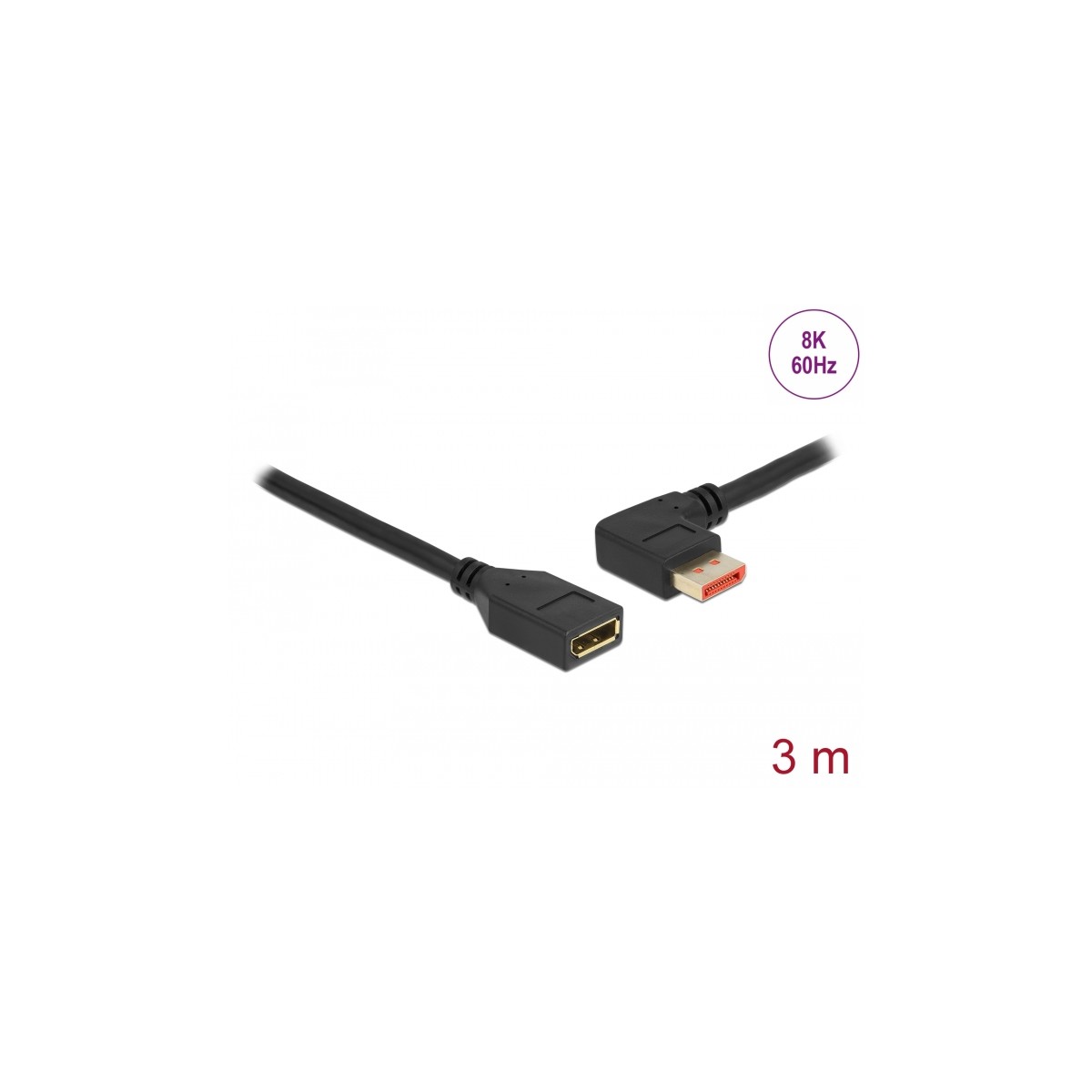 Delock DisplayPort extension cable male 90° left angled to female 8K 60 Hz 3 m