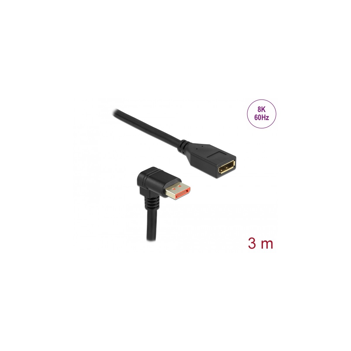 Delock DisplayPort extension cable male 90° downwards angled to female 8K 60 Hz 3 m