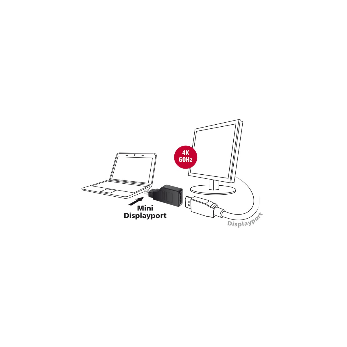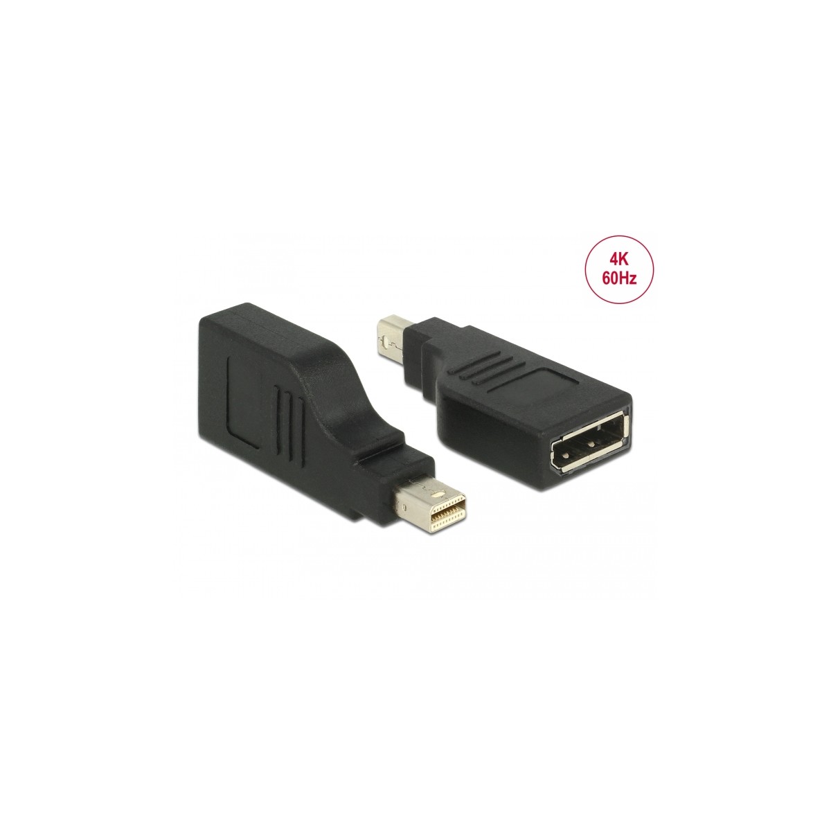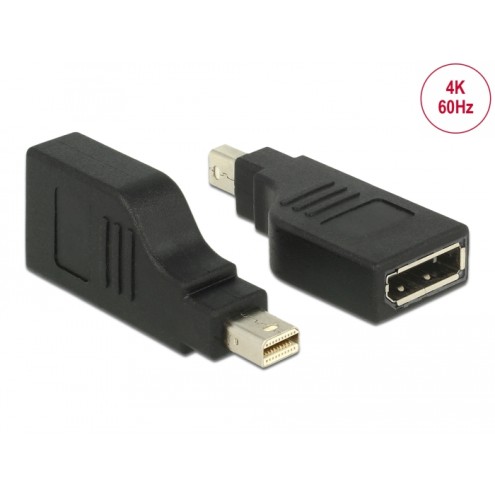 This Adapter by Delock can be connected to a DisplayPort monitor via a free mini DisplayPort interface of the system. Thereby the DisplayPort connector will be turned by 90°. The adapter supports a resolution up to Ultra HD (4K) and is backward compatible to Full-HD 1080p.