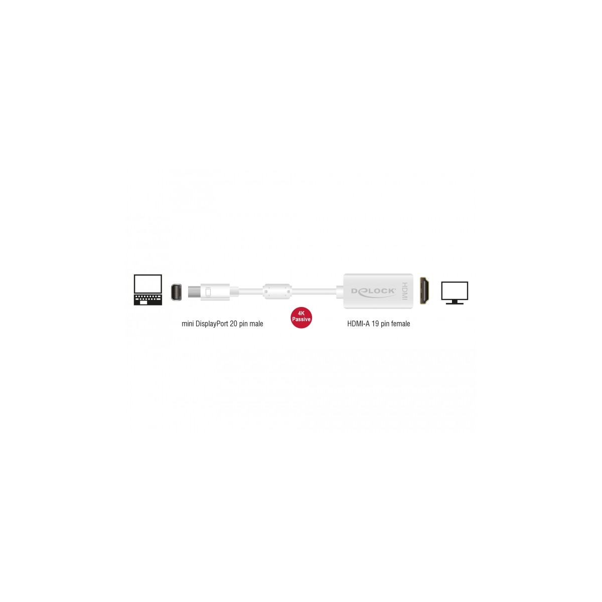 Delock Adapter mini DisplayPort 1.2 male HDMI female 4K Passive white