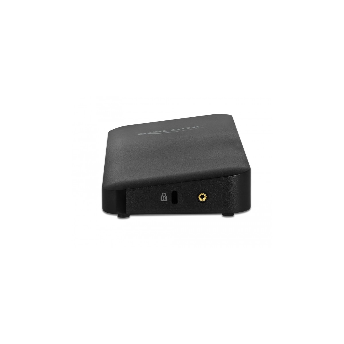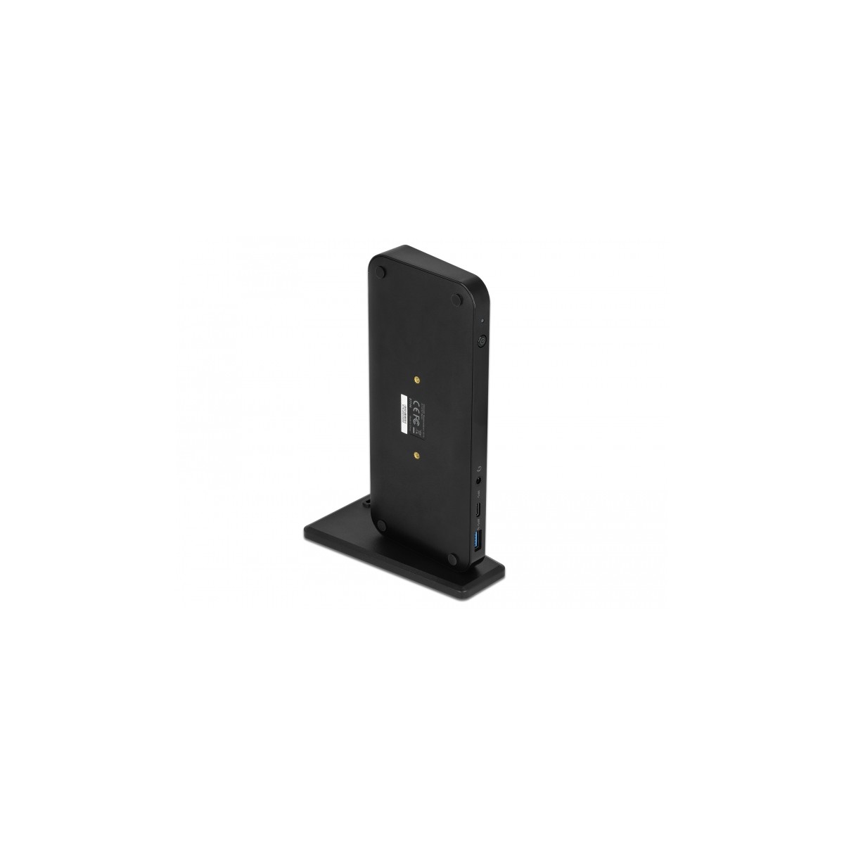 The Delock docking station can be operated either horizontally or vertically. A stand is included for vertical operation. Further the docking station can also be mounted to a 50 mm VESA bracket. The corresponding screw threads are provided on the bottom for this purpose.