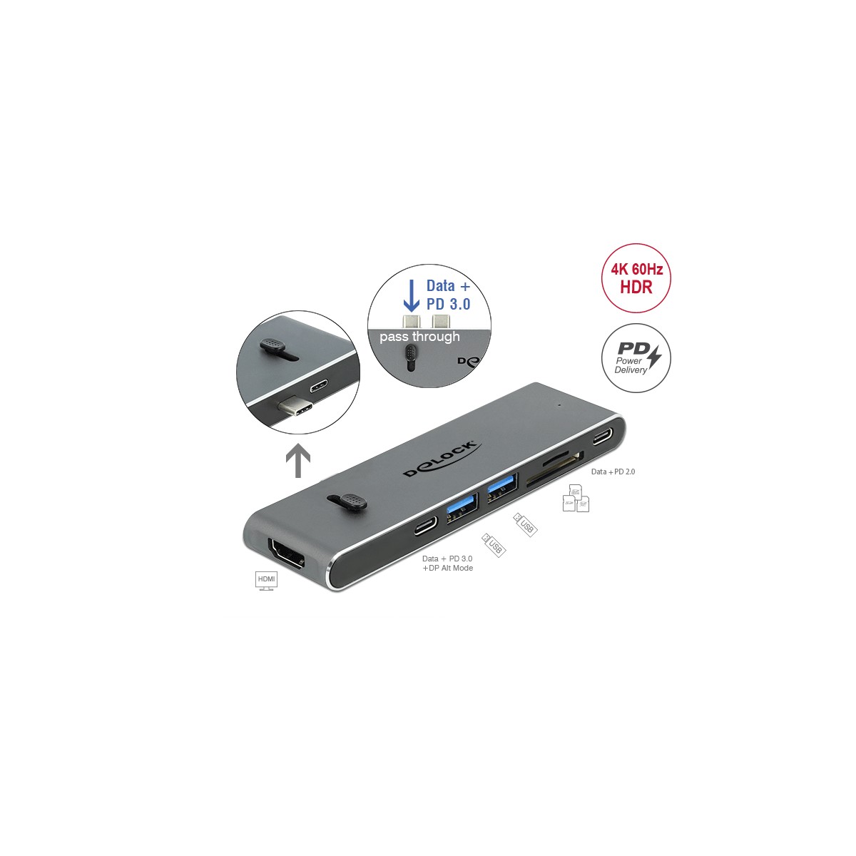 USB-C™ DP Alt Mode up to 3840 x 2160 @ 60 Hz (pass-through)