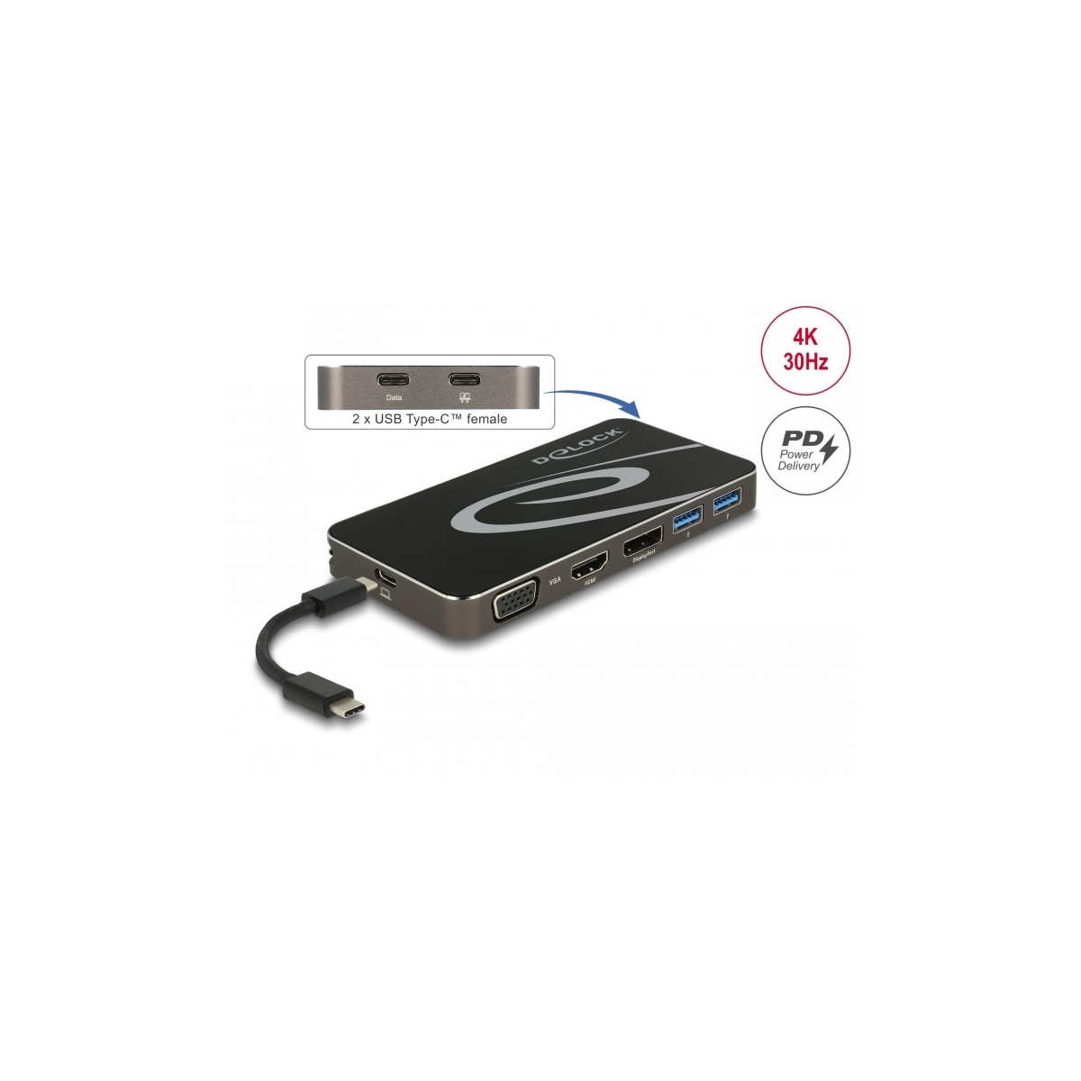 Delock USB Type-C™ 3.2 Dockingstation 4K HDMI DP / 1080p VGA, USB Hub und PD 3.0