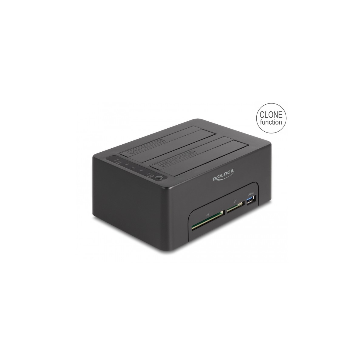 Delock USB Dual Docking Station for 2 x SATA HDD / SSD with Clone Function and Card Reader + additional USB Port