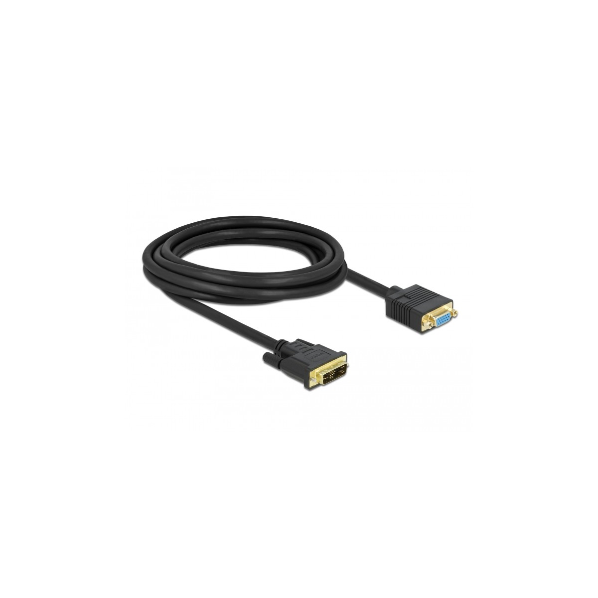 This DVI to VGA cable by Delock supports the transfer of analog video signals and can be used to connect a VGA monitor or a projector to the DVI interface of a PC or laptop, by means of an existing VGA cable.