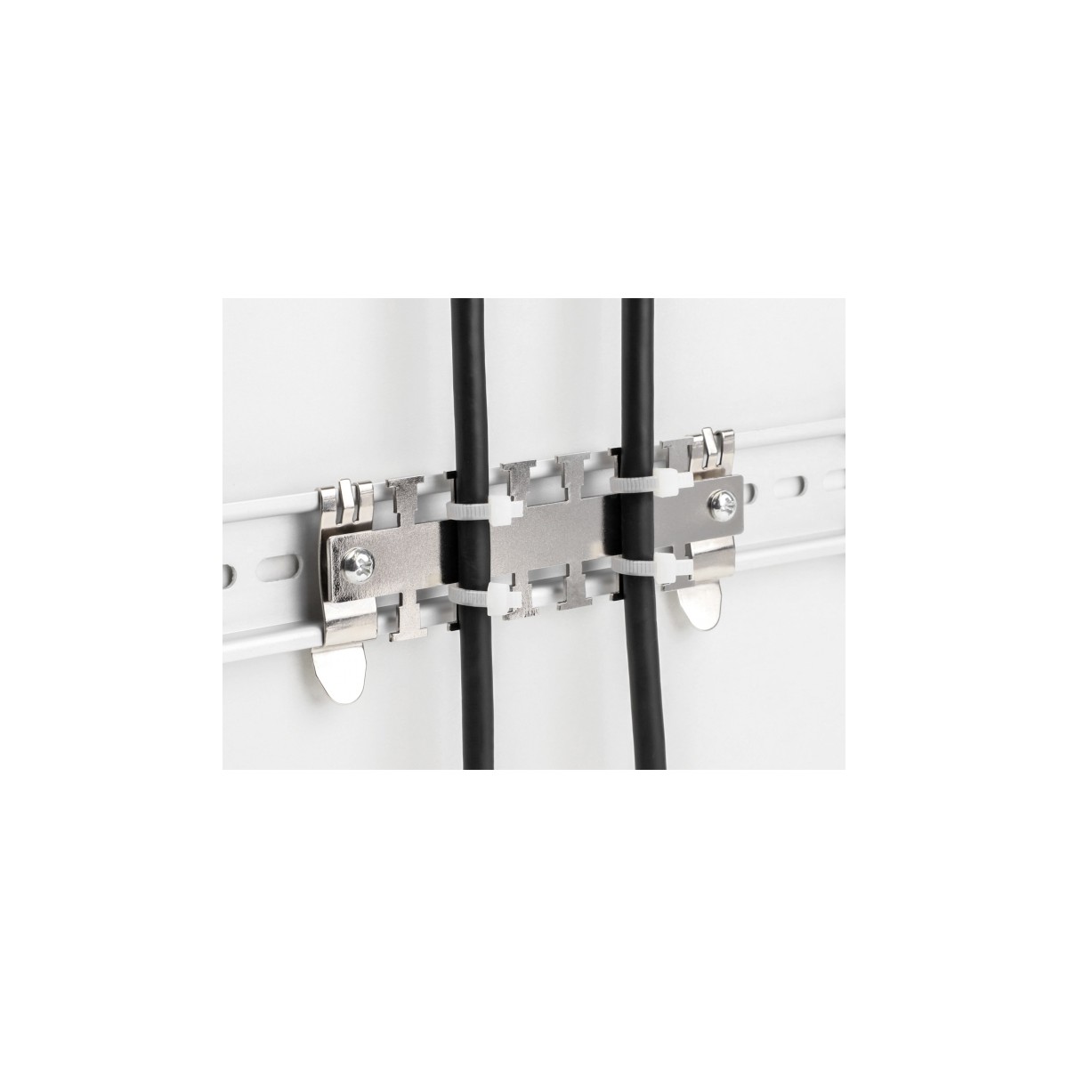 This cable clamp by Delock is suitable for mounting on a 35 mm DIN rail.