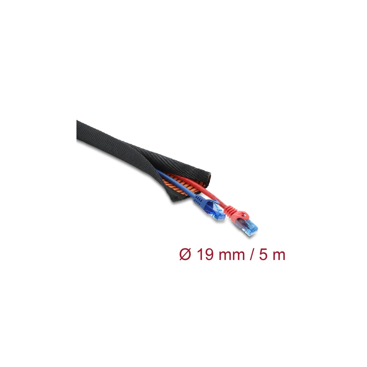 Delock Cable Protection Sleeve with orange Wear Warning Indicator self-closing double-layered 5 m x 19 mm black