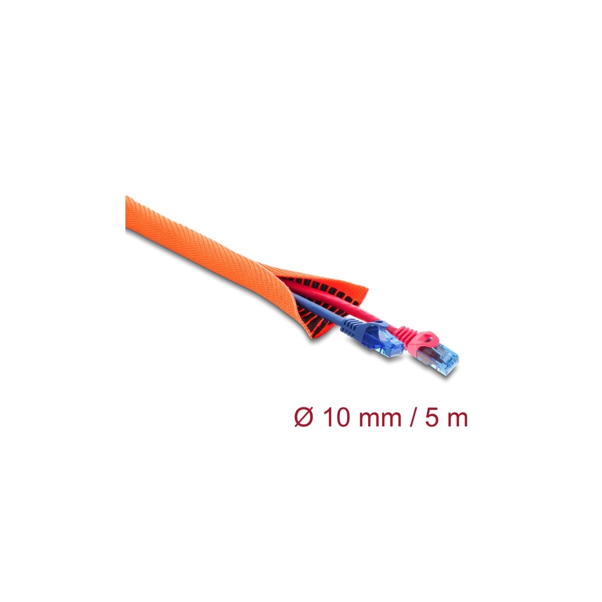Delock Cable Protection Sleeve with black Wear Warning indicator self-closing double-layered 5 m x 10 mm orange
