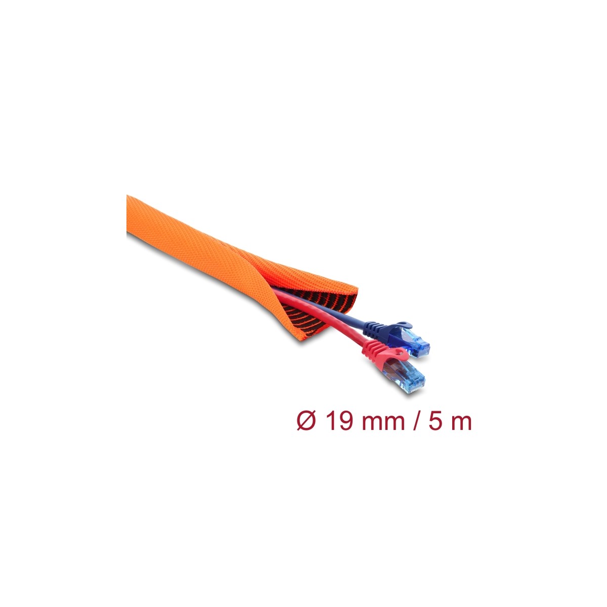 Delock Cable Protection Sleeve with black Wear Warning indicator self-closing double-layered 5 m x 19 mm orange