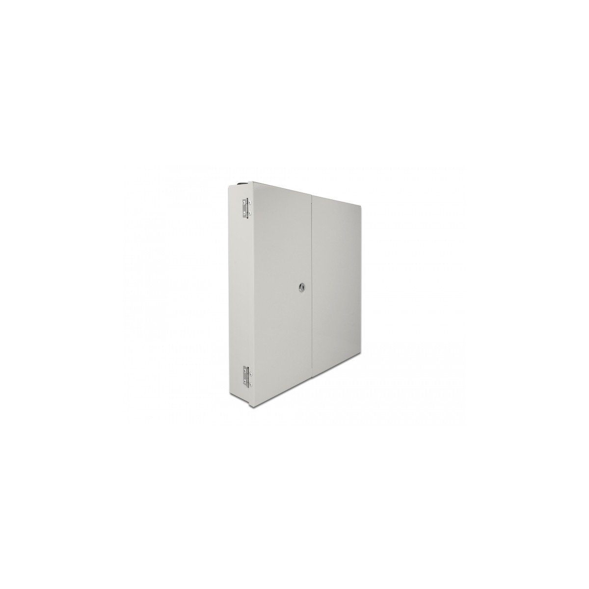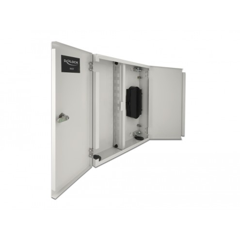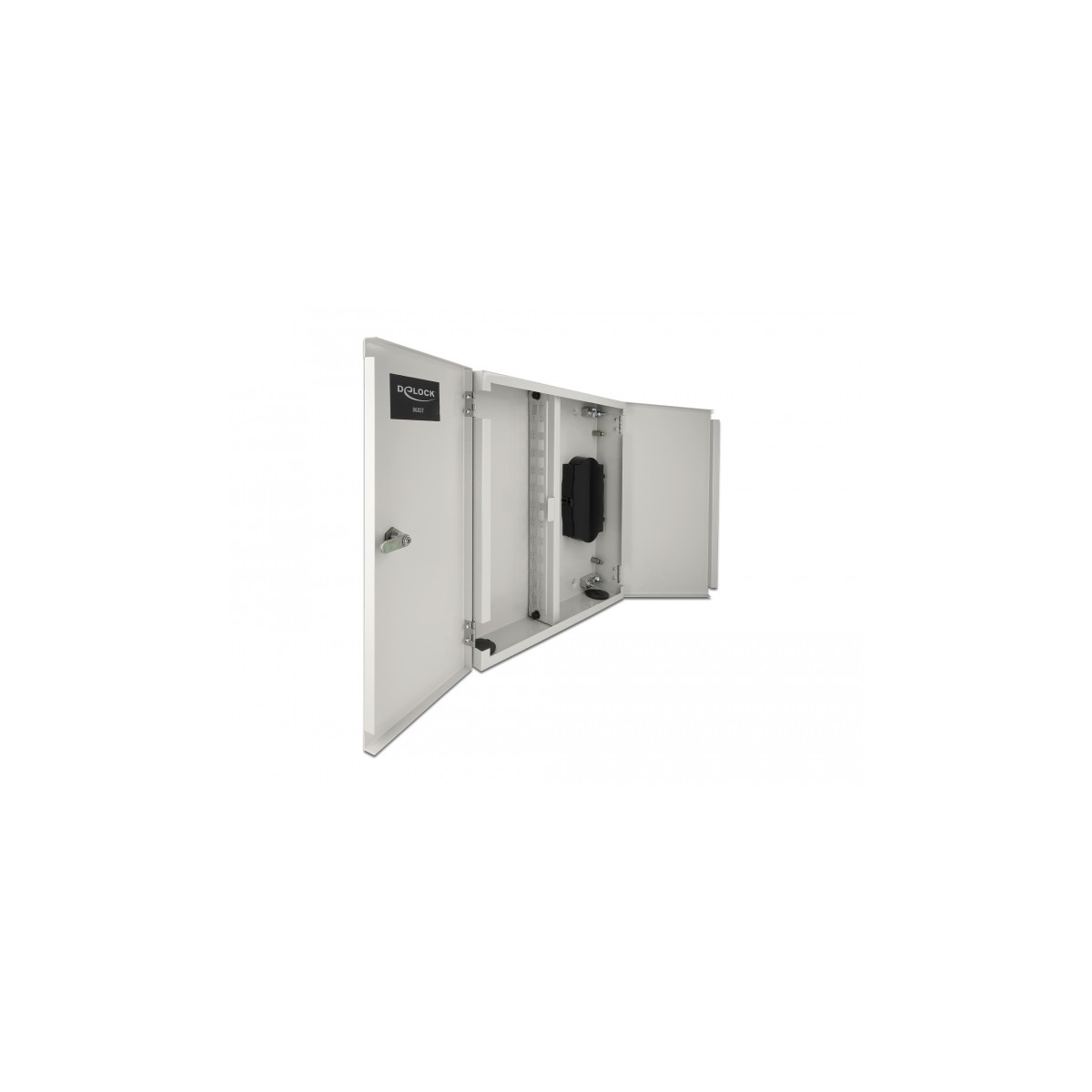 This fiber optic distribution box by Delock can be used for wall mounting and serves as a protective housing for optical cables and couplings. The integrated adapter plate allows to accommodate 24 fiber optic couplings of the types SC, LC, FC, ST or E2000 in the distribution box. The fiber optic cables can be fixed in the housing via two cable entry openings at the top and bottom with metric cable glands.