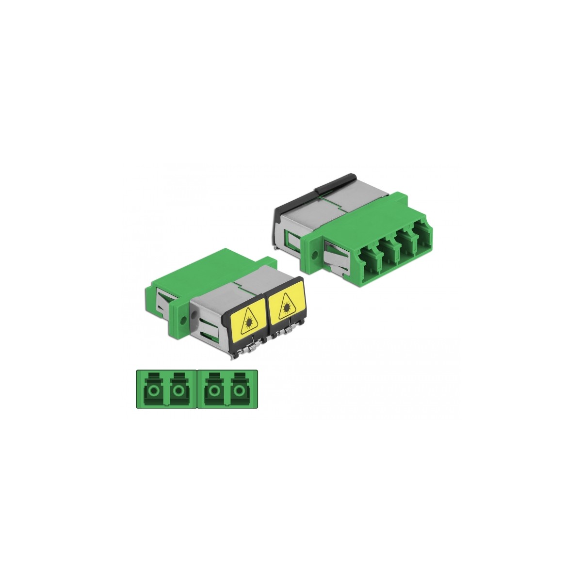 Delock Optical Fiber Coupler with laser protection flip LC Quad female to LC Quad female Single-mode green