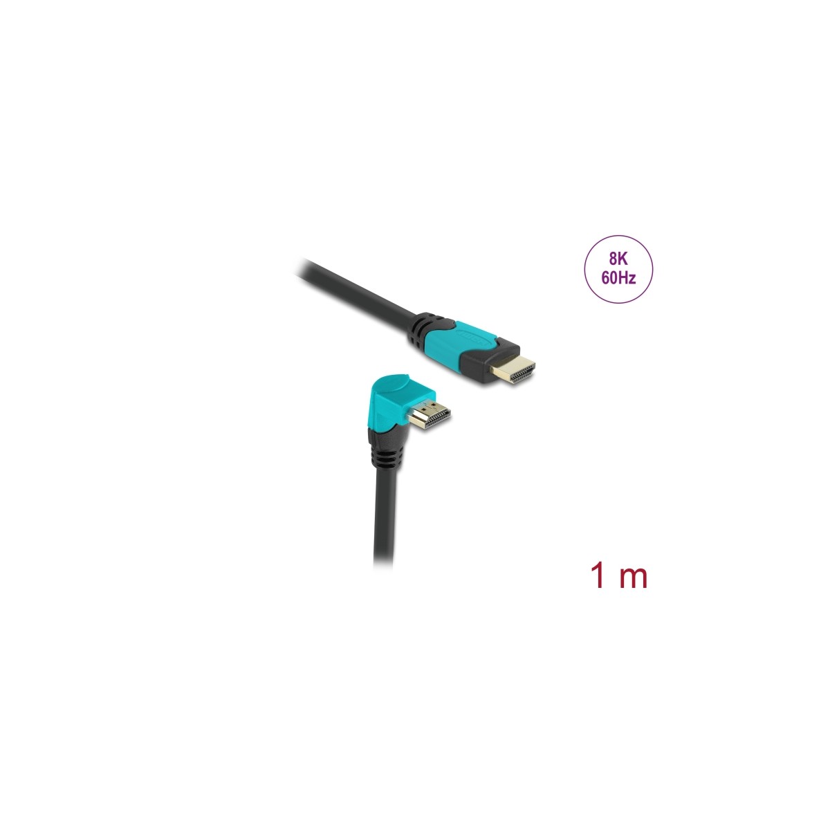 Delock High Speed HDMI cable male straight to male 90° downwards angled 48 Gbps 8K 60 Hz 1 m