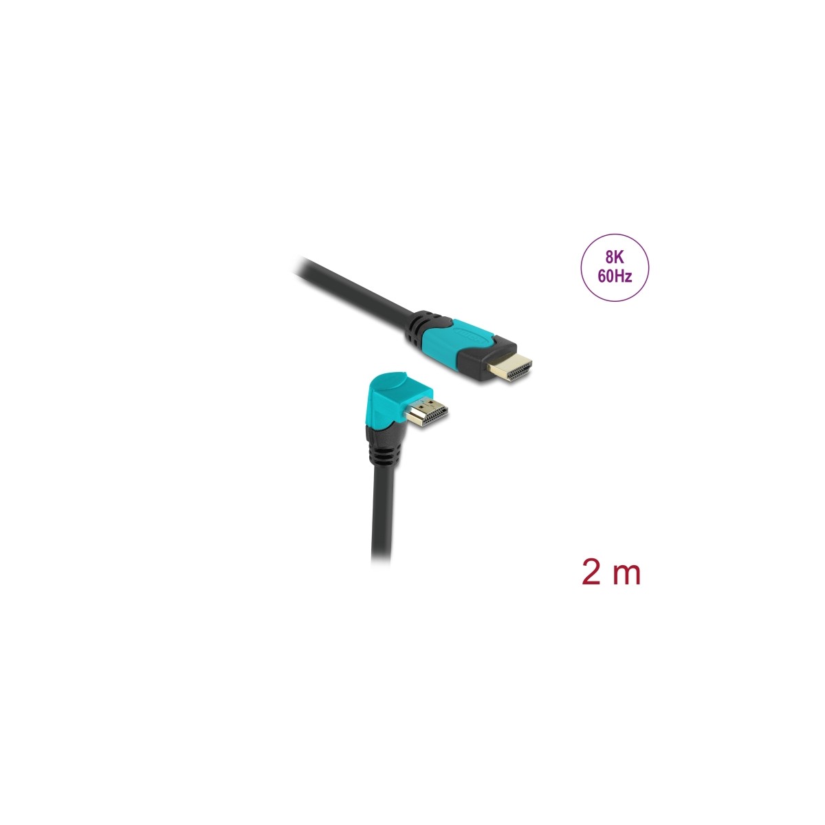 Delock High Speed HDMI cable male straight to male 90° downwards angled 48 Gbps 8K 60 Hz 2 m
