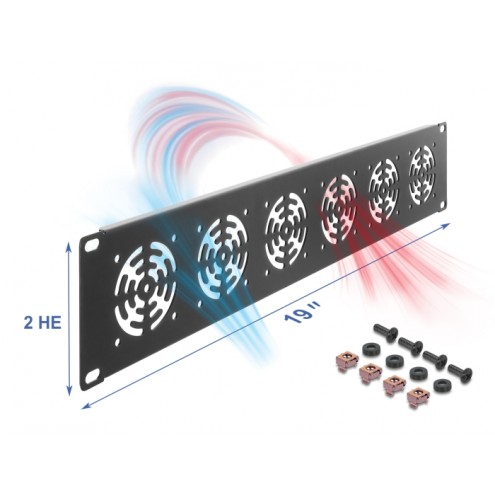 This panel by Delock is suitable for fan mounting in a 19″ network cabinet.