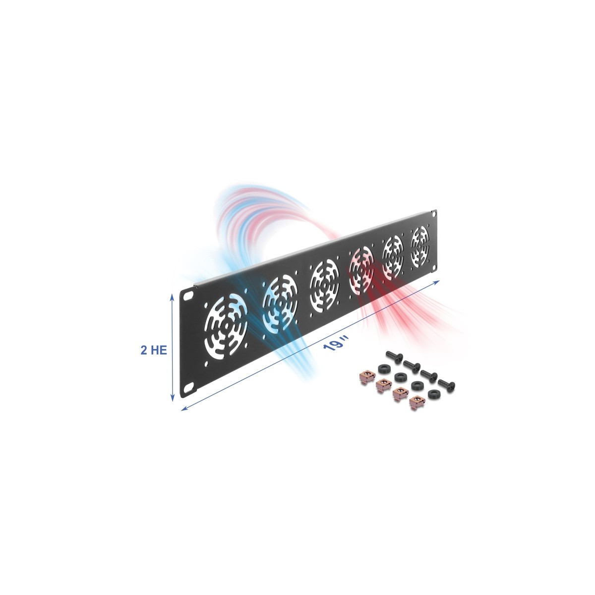 Delock 19″ 2U Rack Cover for 6 fans 60 x 60 mm dark grey