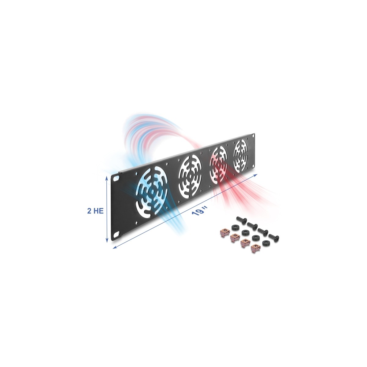 Delock 19″ 2U Rack Cover for 4 fans 80 x 80 mm dark grey