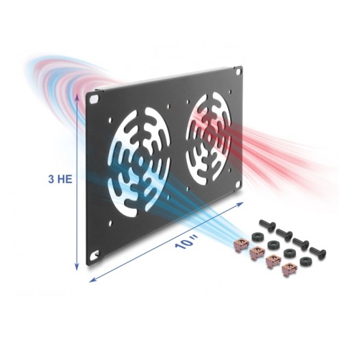 This panel by Delock is suitable for fan mounting in a 10″ network cabinet.