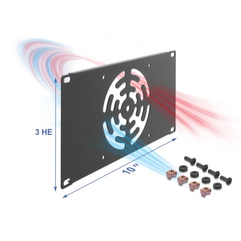This panel by Delock is suitable for fan mounting in a 10″ network cabinet.