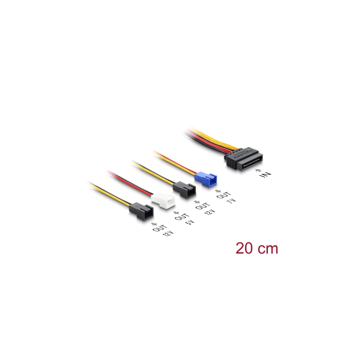 Power cable SATA 15 pin plug to 4 x 2 pin fan (12 V / 7 V / 5 V) 20 cm