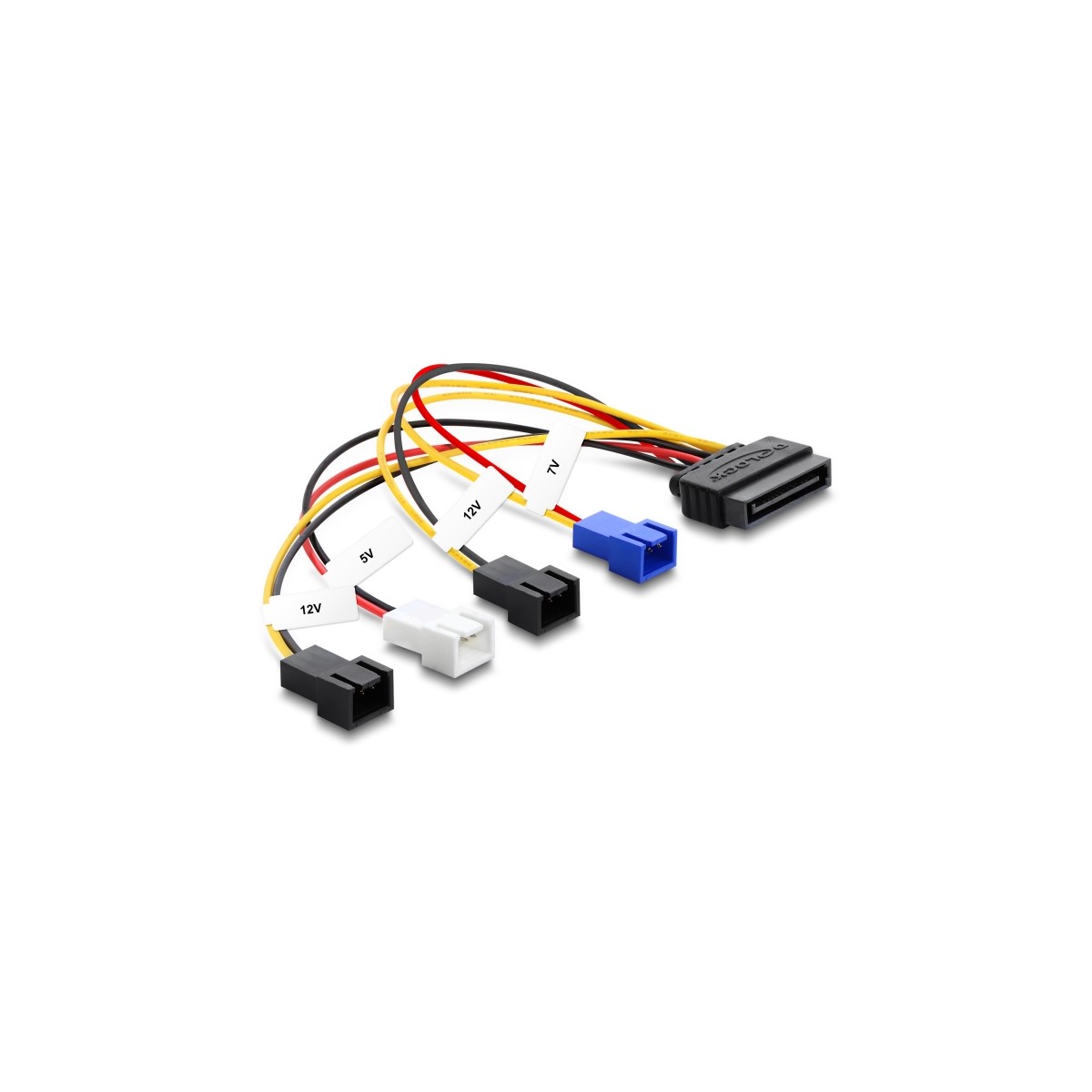 This cable by Delock can be used for power supply of up to 4 fans at the same time by connecting it to a free 15 pin SATA interface.