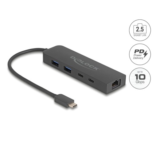 Delock 10 Gbps USB Hub with 2.5 Gigabit LAN port and PD 85 Watt