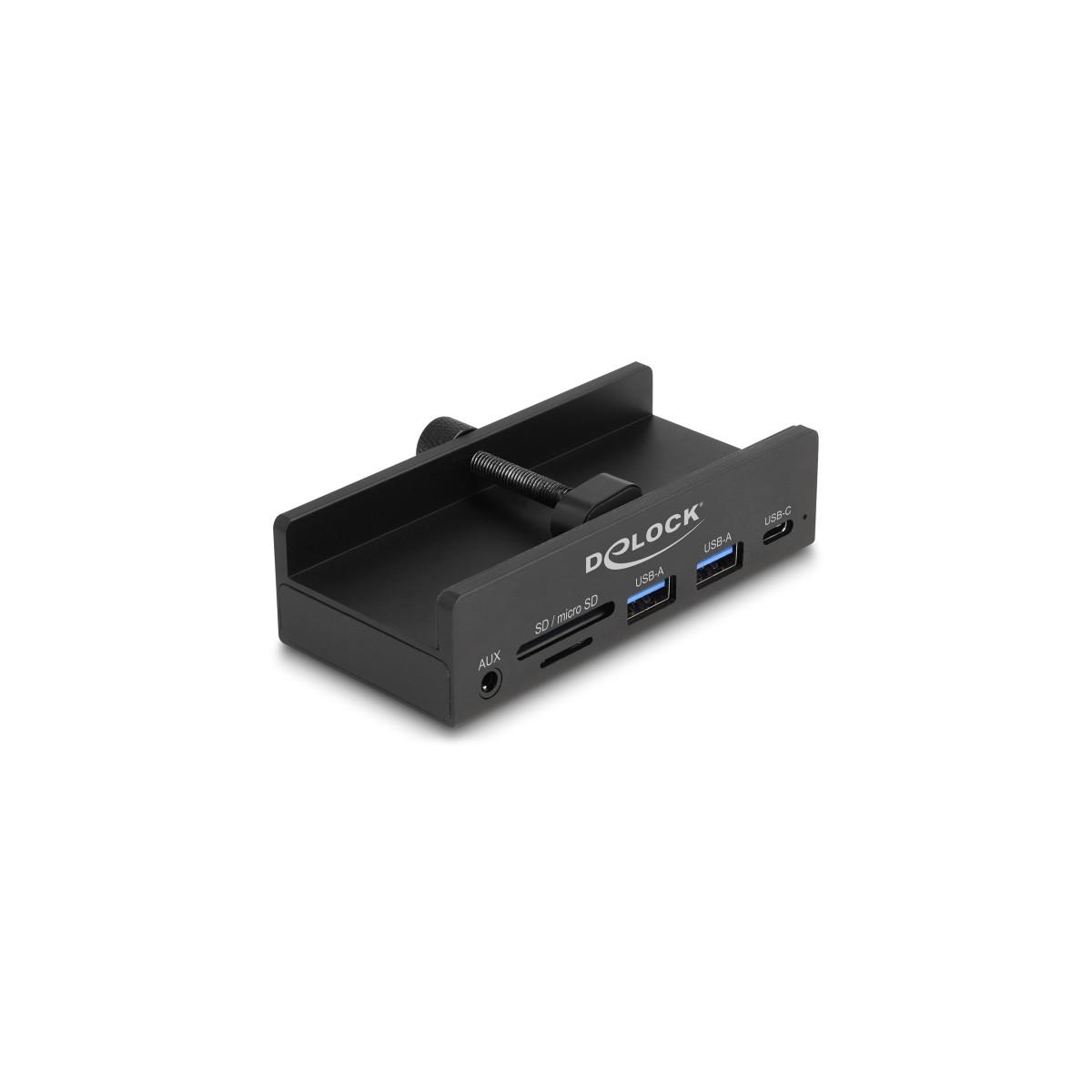 Delock External USB 5 Gbps 3 Port Hub 2 x USB Type-A, 1 x USB Type-C™ and 2 Slot Card Reader with Locking Screw