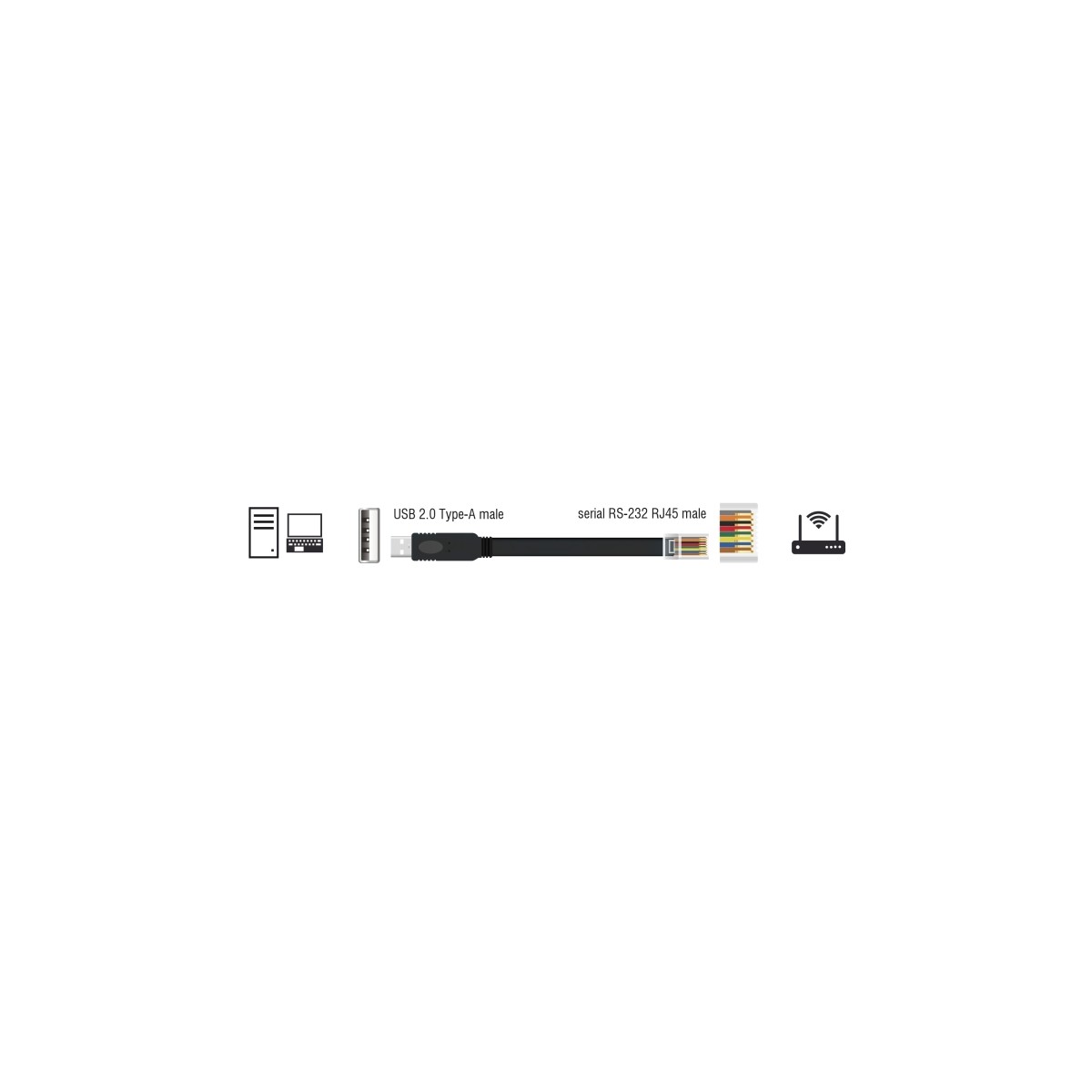 This USB 2.0 to RS-232 adapter by Delock is suitable for the console at CISCO routers, switches, access points and other compatible devices via PC or laptop.