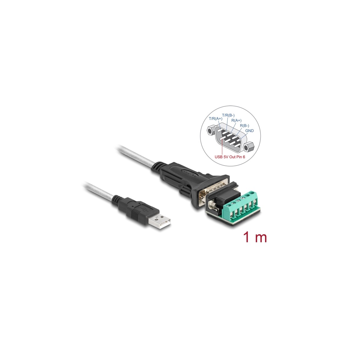 Delock Adapter USB 2.0 Type-A to 1 x Serial RS-422/485 male with 6 pin terminal block 5 V 1 m