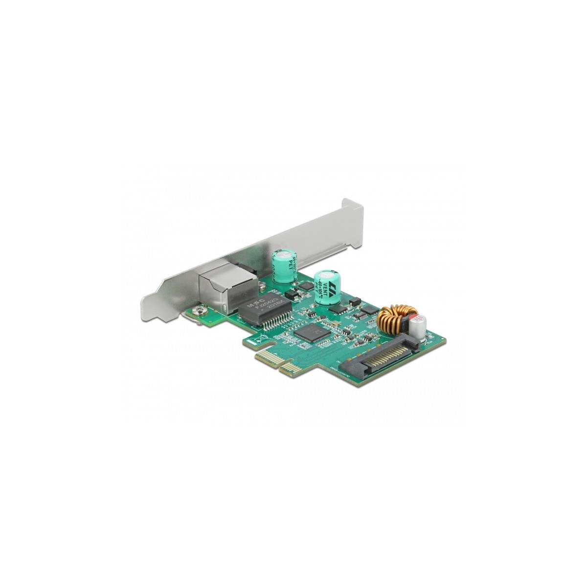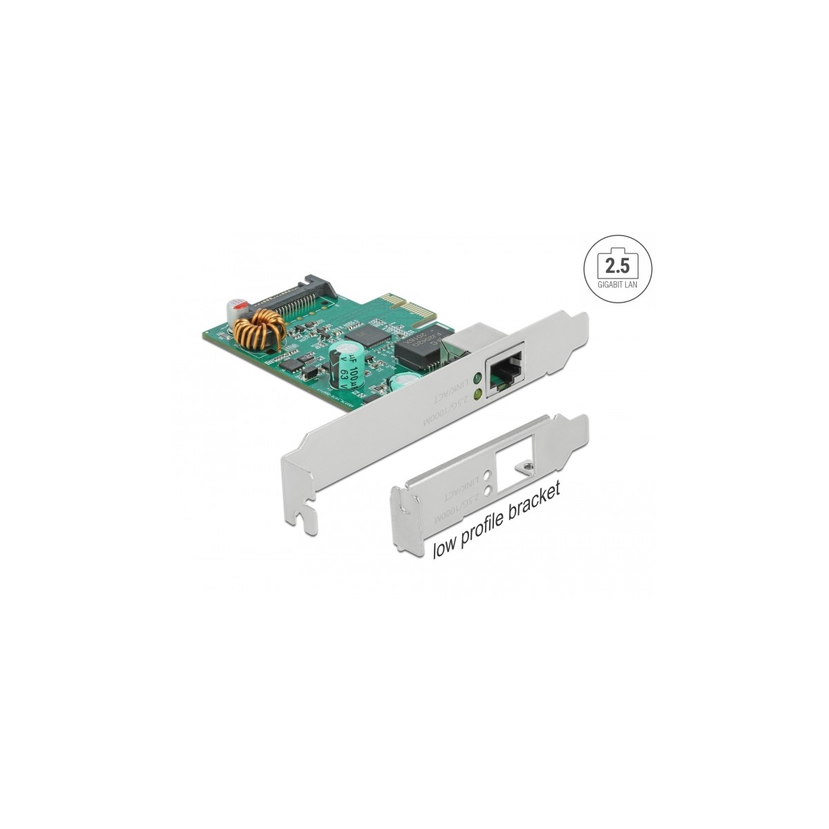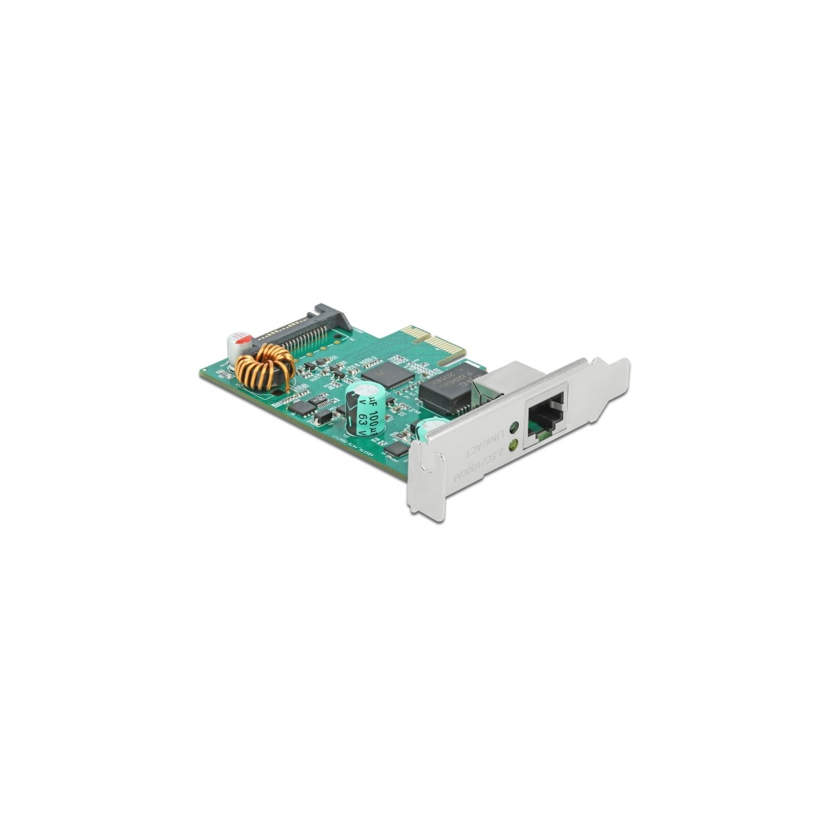 The PCI Express card by Delock offers one network port with a data transfer rate up to 2500 Mbps.