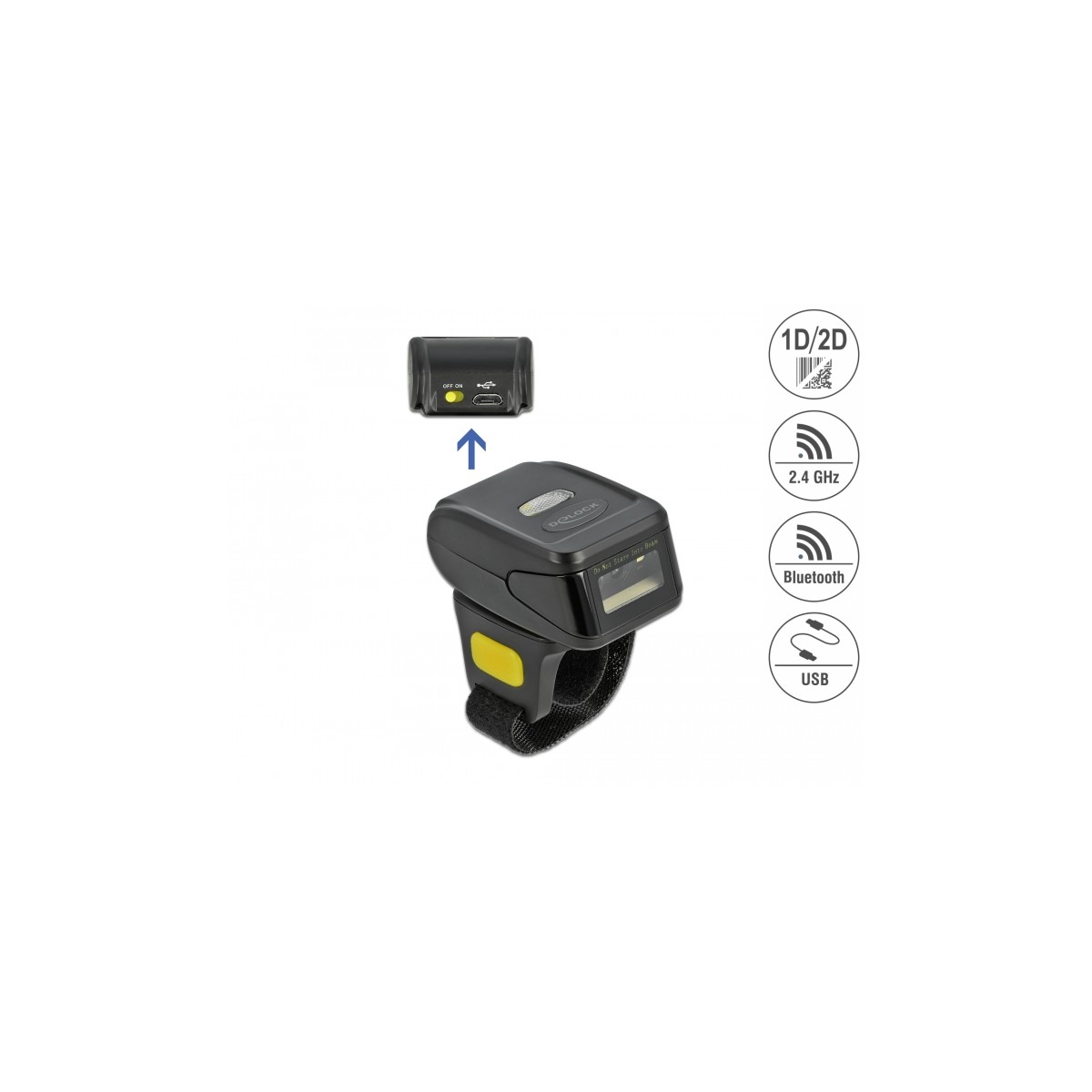 Delock Ring Barcode Scanner 1D and 2D with 2.4 GHz or Bluetooth