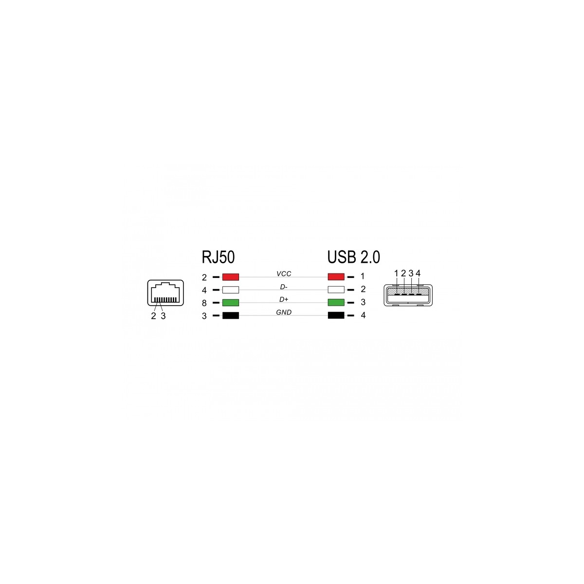 This cable by Delock can be used, for example, to connect a barcode scanner with RJ50 socket to the system.