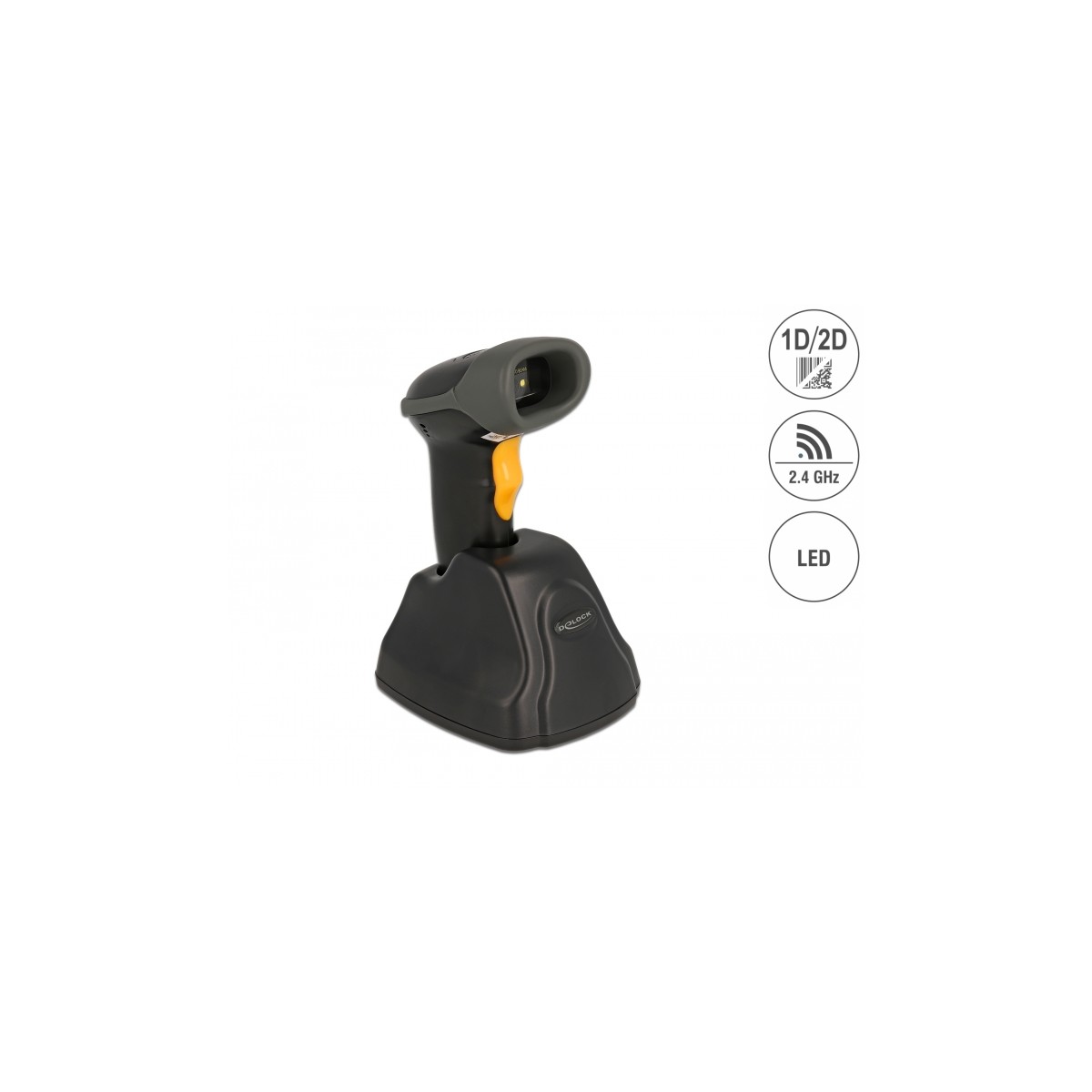 Delock 2.4 GHz Barcode Scanner 1D and 2D with charging station - multilingual