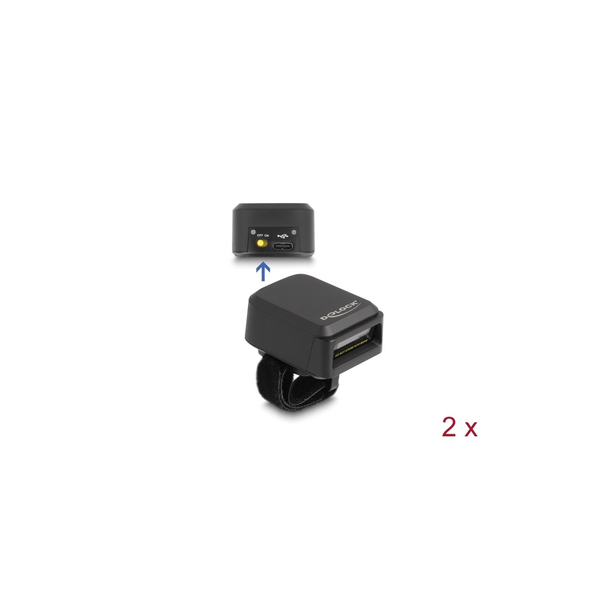 Delock Ring Barcode Scanner 1D and 2D with 2.4 GHz or Bluetooth (2 pieces) + Charging Station