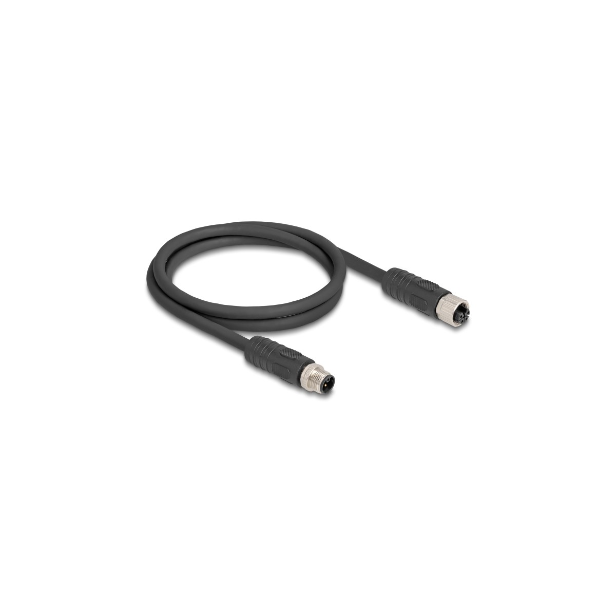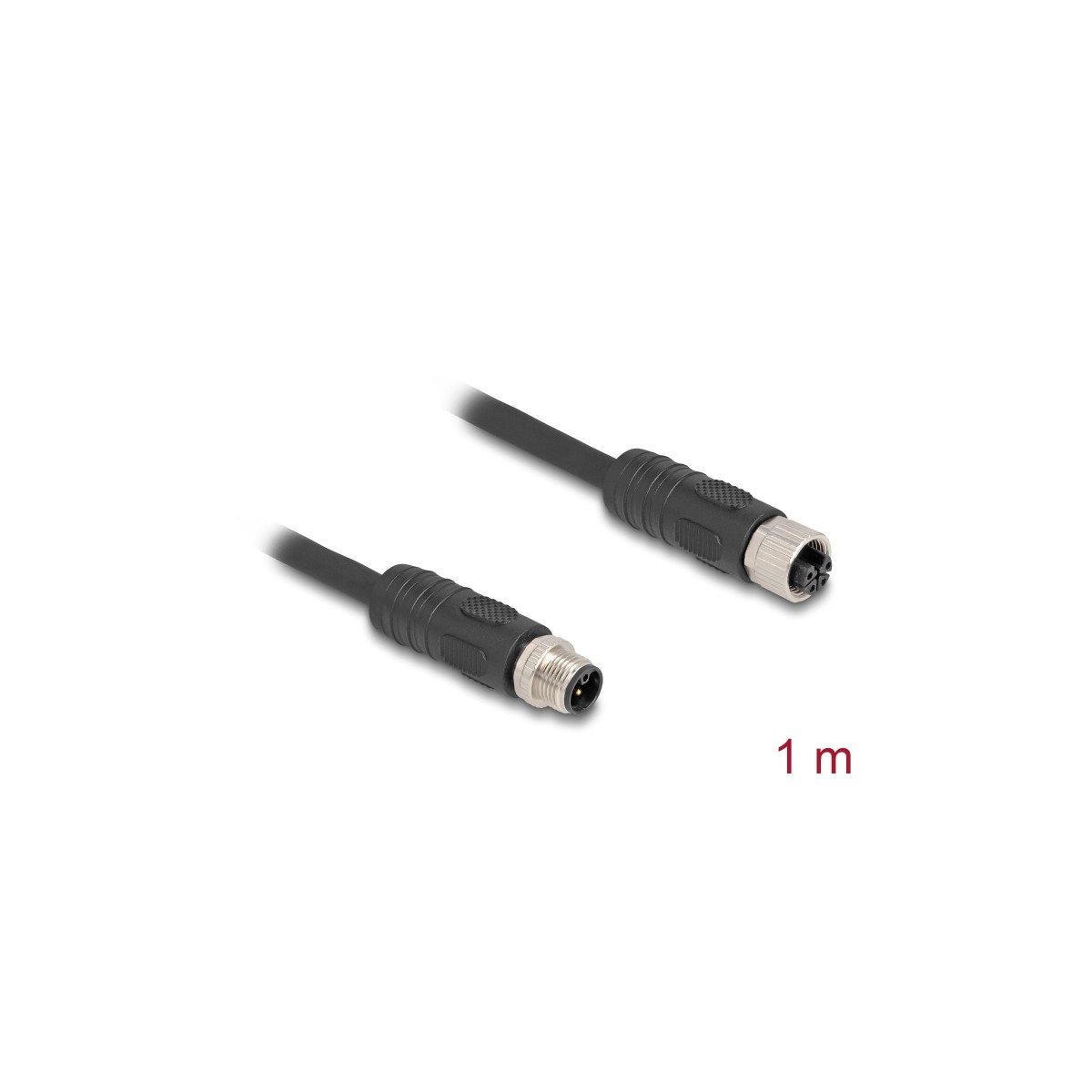 Delock M12 Cable L-coded 4 pin male to female PUR suitable for drag chains 1 m black