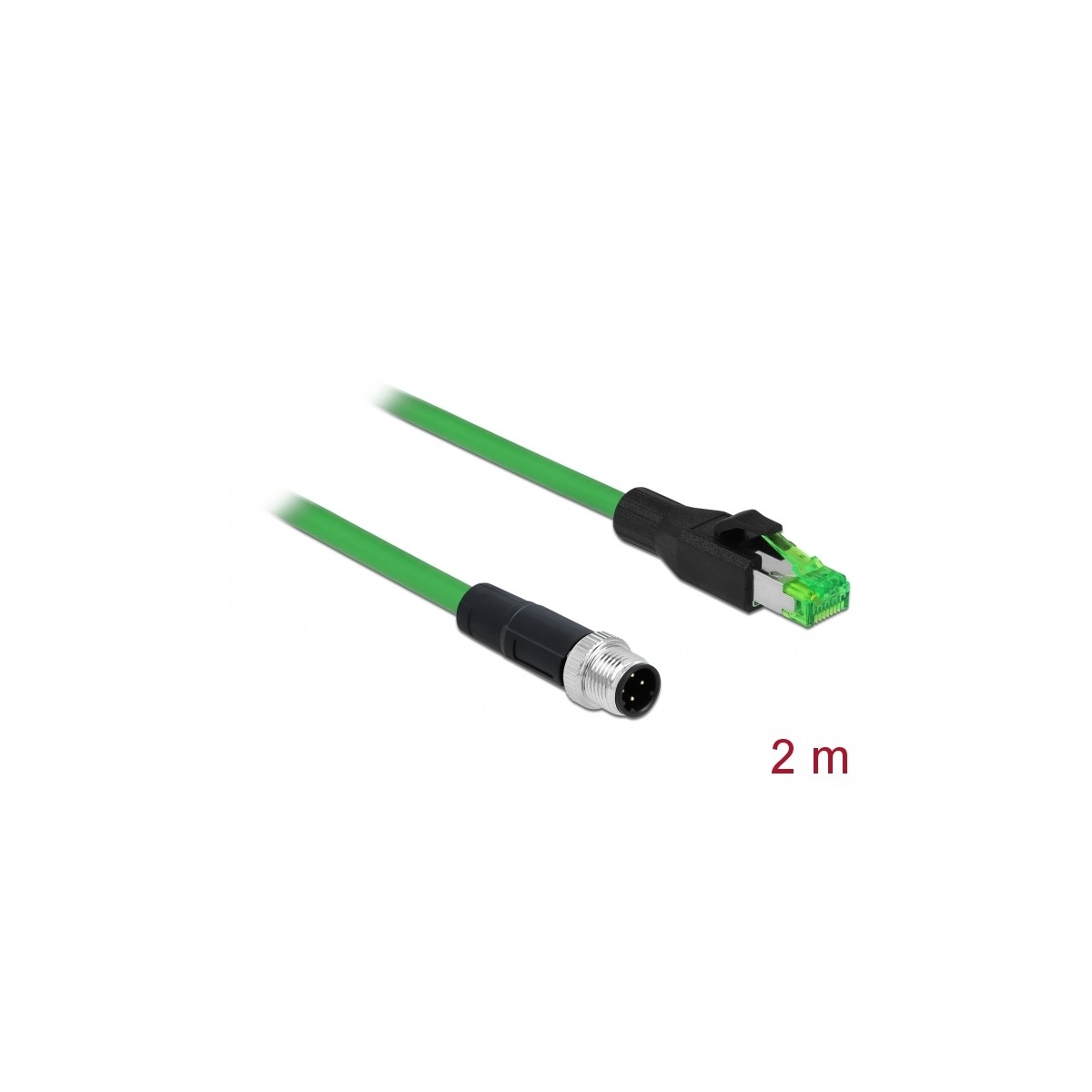 Delock Network cable M12 4 pin D-coded to RJ45 plug PVC 2 m