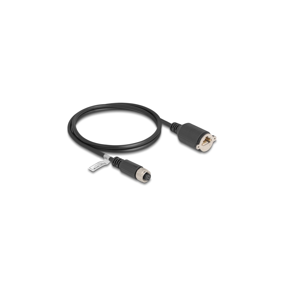 Delock M12 Cable A-coded 8 pin female to RJ45 jack for installation Cat.5e FTP 1 m black