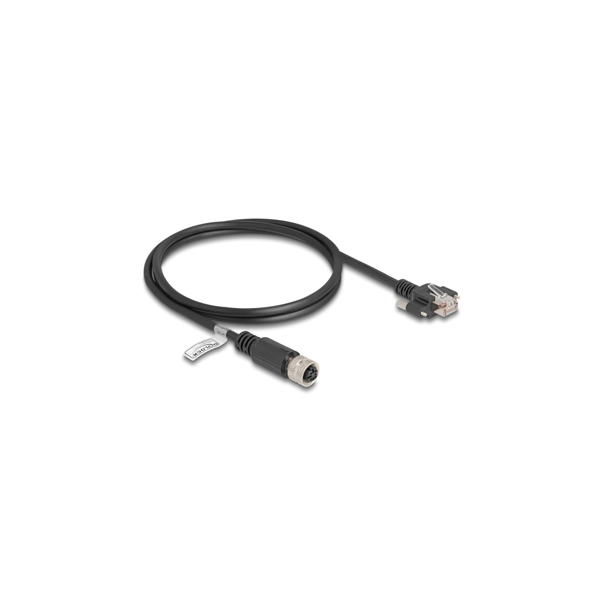 Delock M12 Cable D-coded 4 pin female to RJ45 plug with screws Cat.5e FTP 1 m black