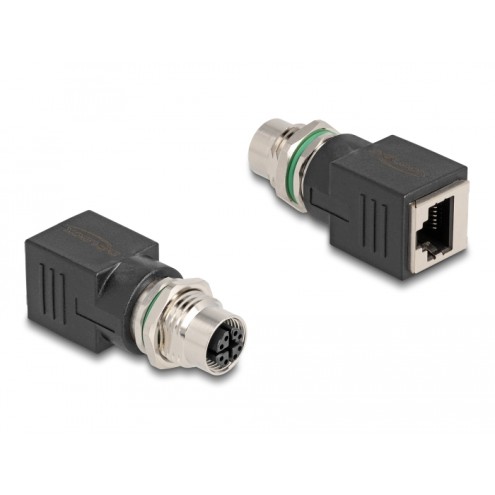 This industrial Ethernet adapter by Delock can be used to connect various components with M12 connectors, e.g. for machine control or automation.