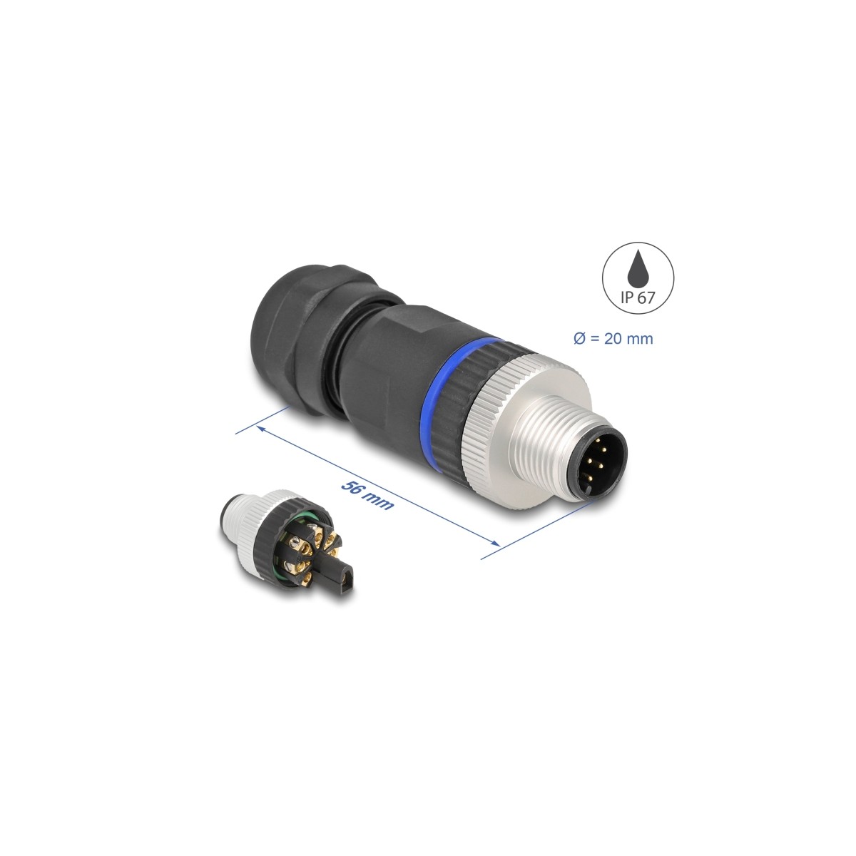 This connector by Delock can be used to connect a cable via a screw terminal connection with an M12 connector, e.g. for machine control or automation.